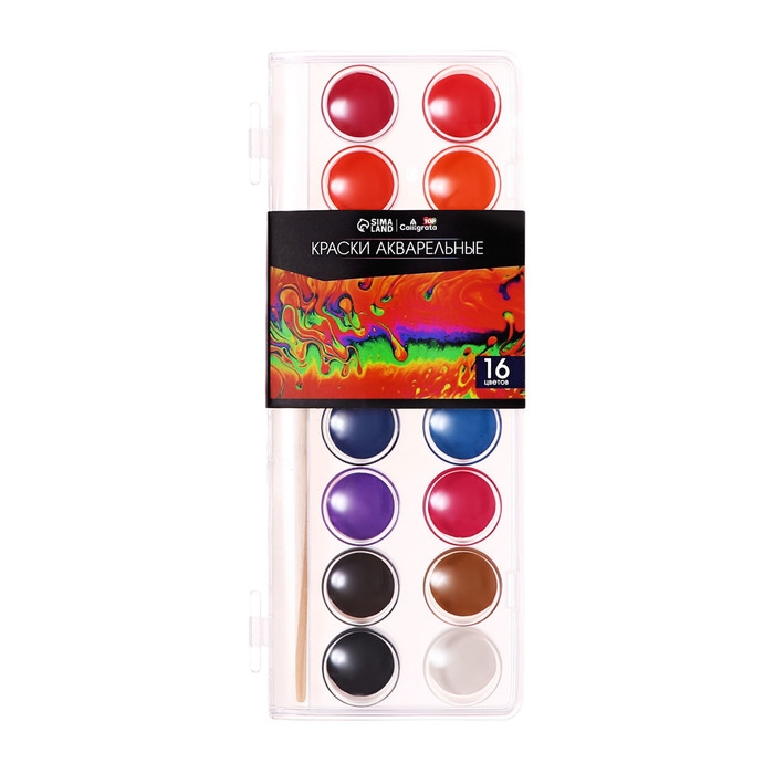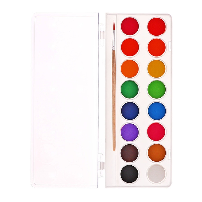 Краски акварельные 16 цветов, круглые, диаметр кюветы 23 мм, с кистью, пластиковый пенал, CALLIGRATA TOP