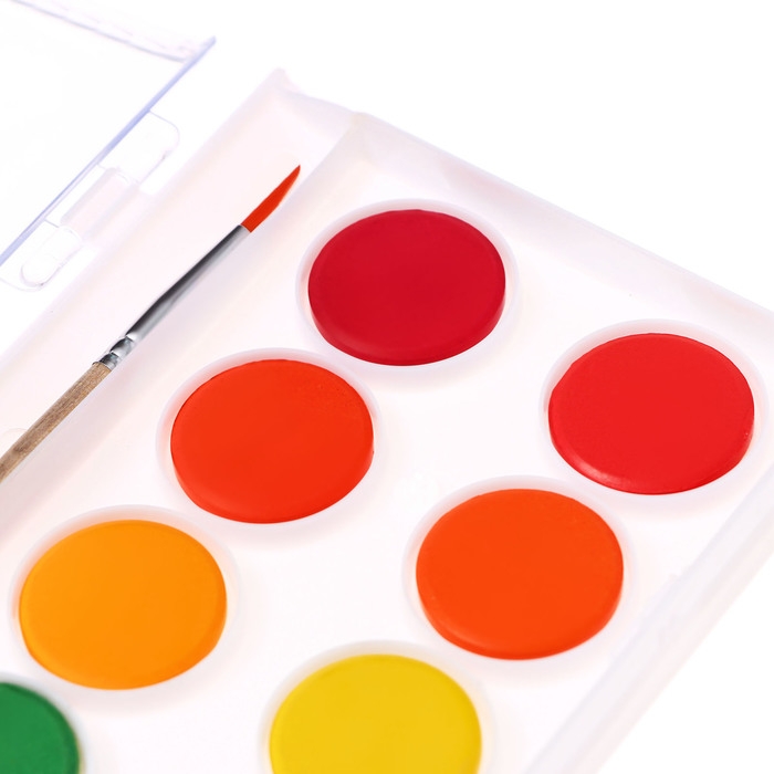 Краски акварельные, в кюветах, с кистью, 12 цветов