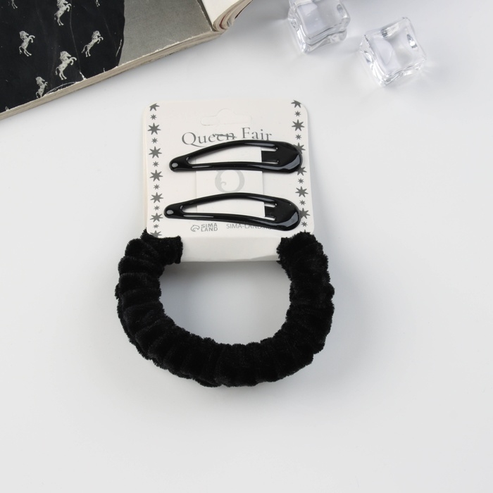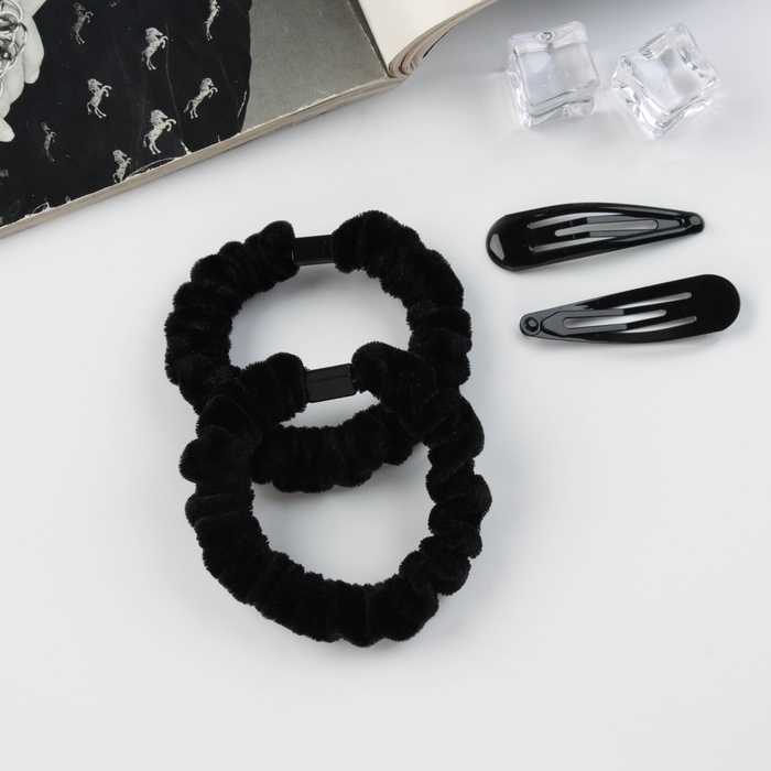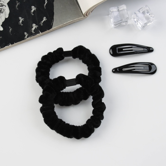 Набор для волос "Глория нежность" (2 резинки 5,5 см, 2 невидимки 5 см) чёрный