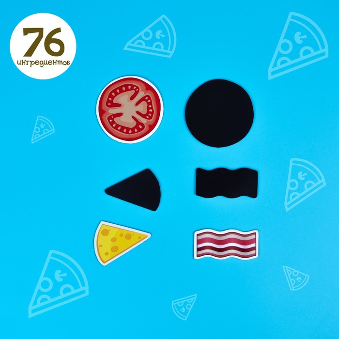 Игровой набор на магнитах «Готовим вместе. Любимая пицца» будет интересен всем, кто хочет попробовать себя в роли настоящего повара и приготовить вкусное лакомство. В представленном наборе имеется магнитная основа для пиццы, ингредиенты (76 магнитных фигурок) и меню.