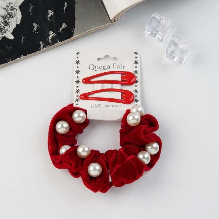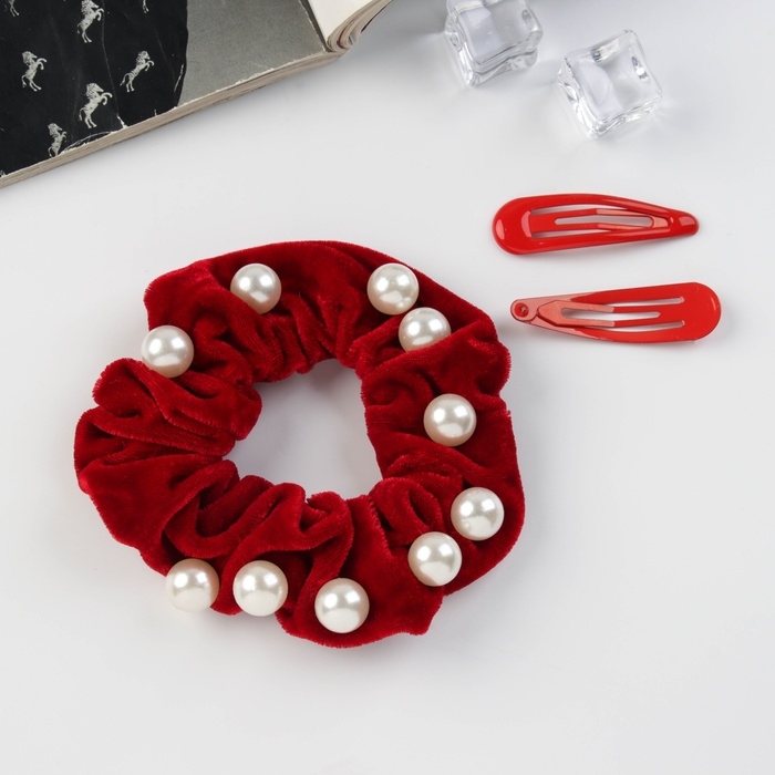 Набор для волос "Глория грация" (резинка 7 см, 2 невидимки 5 см) красный