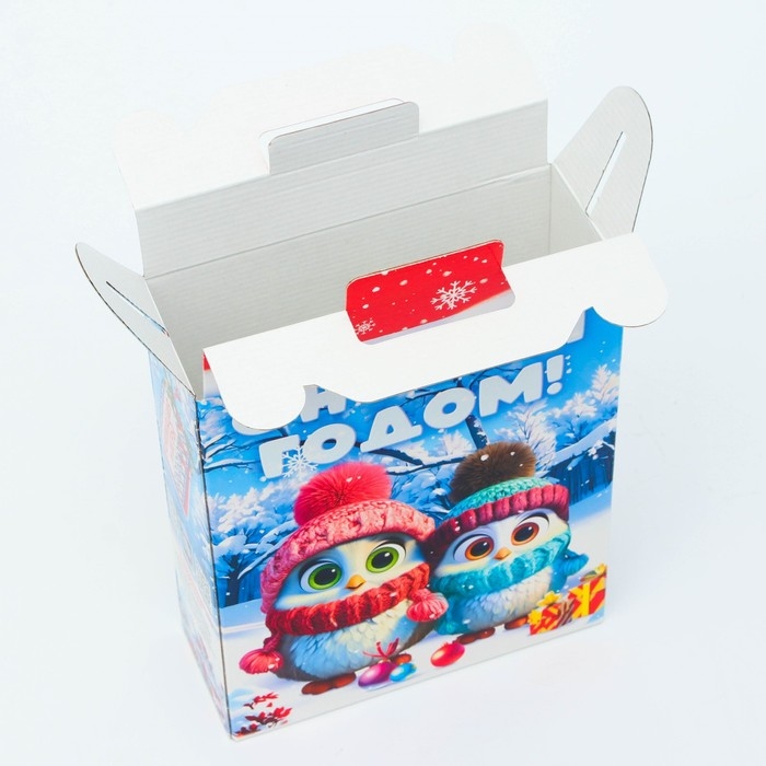 Коробка выполнена из качественных материалов, которые обеспечивают сохранность содержимого. Она имеет яркий и красочный дизайн, который отражает атмосферу Нового года.