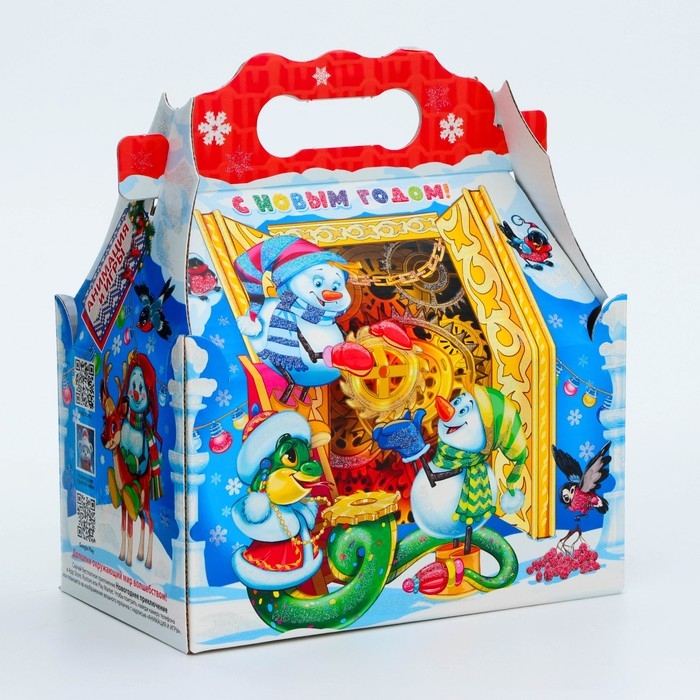 Коробка выполнена из качественных материалов, которые обеспечивают сохранность содержимого. Она имеет яркий и красочный дизайн, который отражает атмосферу Нового года.