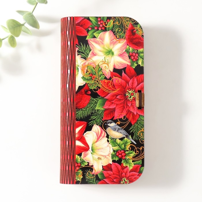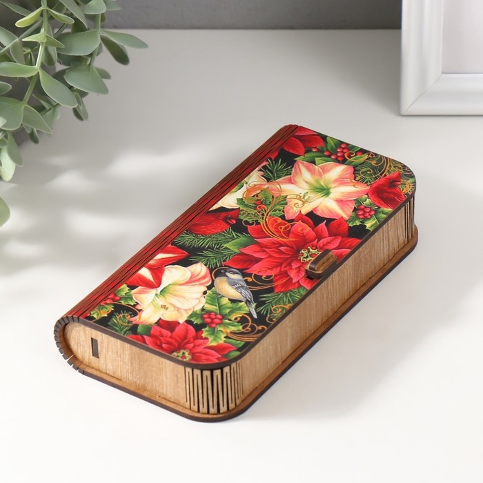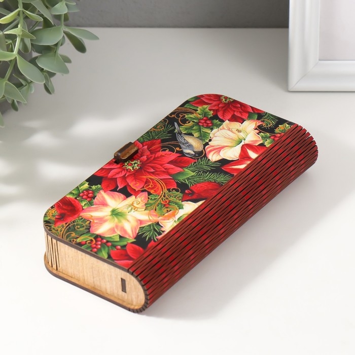 Новогодняя шкатулка "Цветок пуансеттия" 17х8,5 см