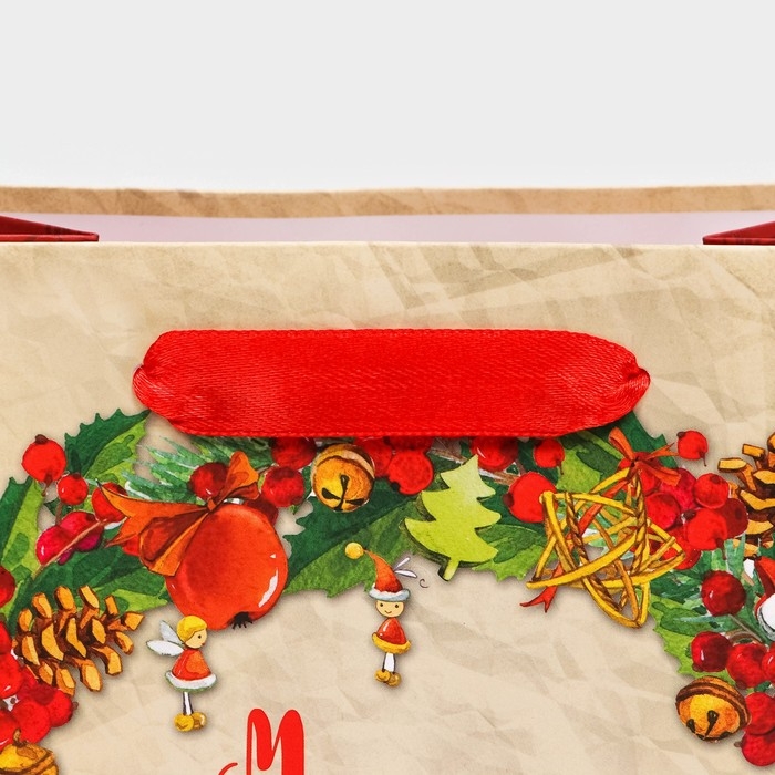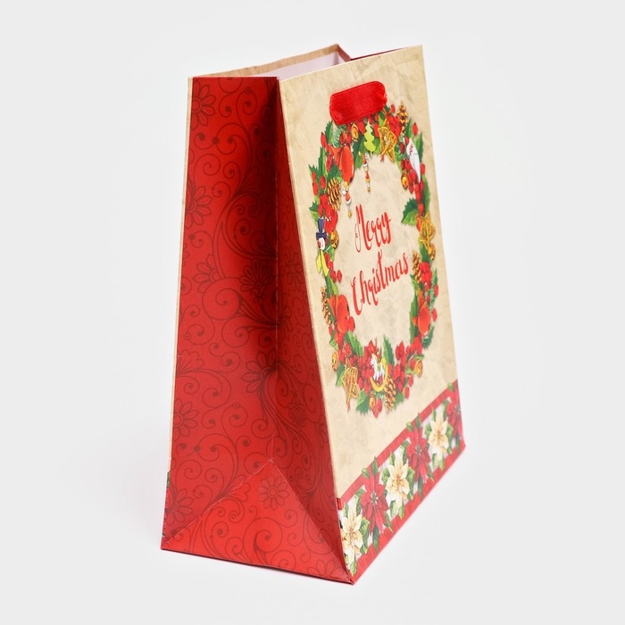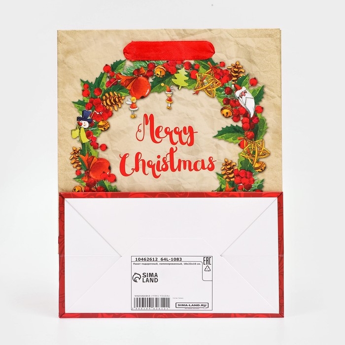 Новый год. Пакет подарочный, ламинированный, "Венок",18 х 23 х 10 см.