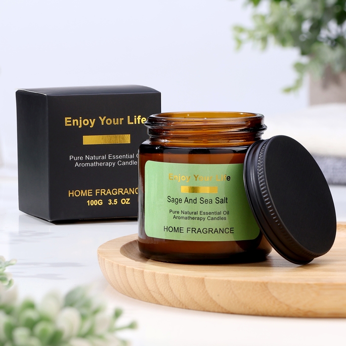 Свеча ароматическая в банке "Морская соль и шалфей", 6х6,5 см