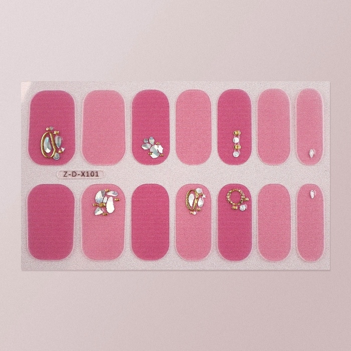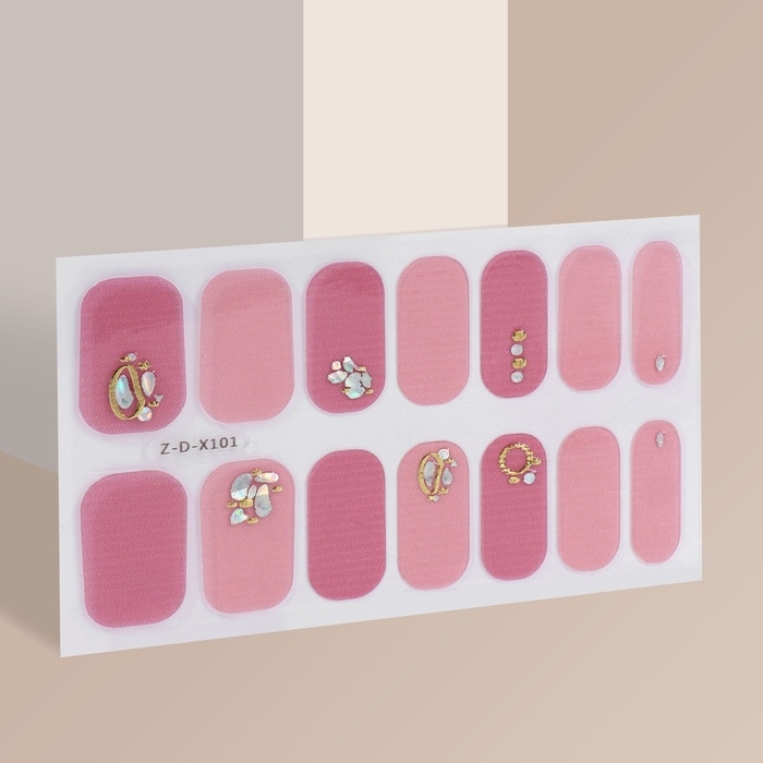 Лаковые полоски для маникюра, 14 шт, цвет розовый