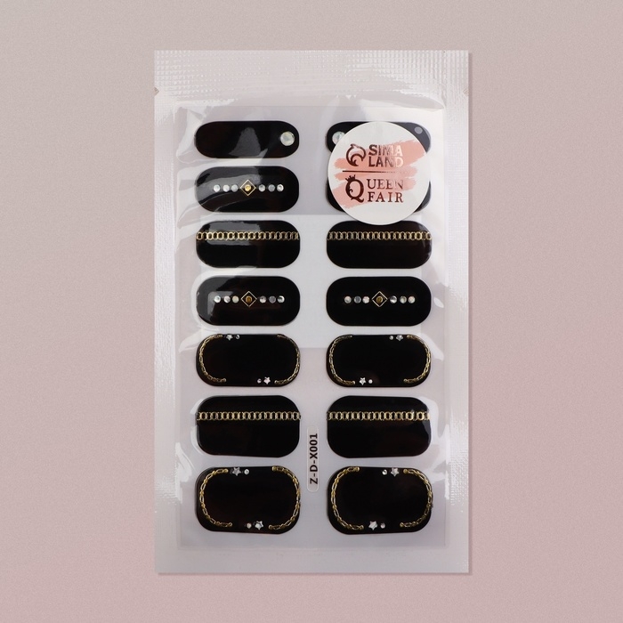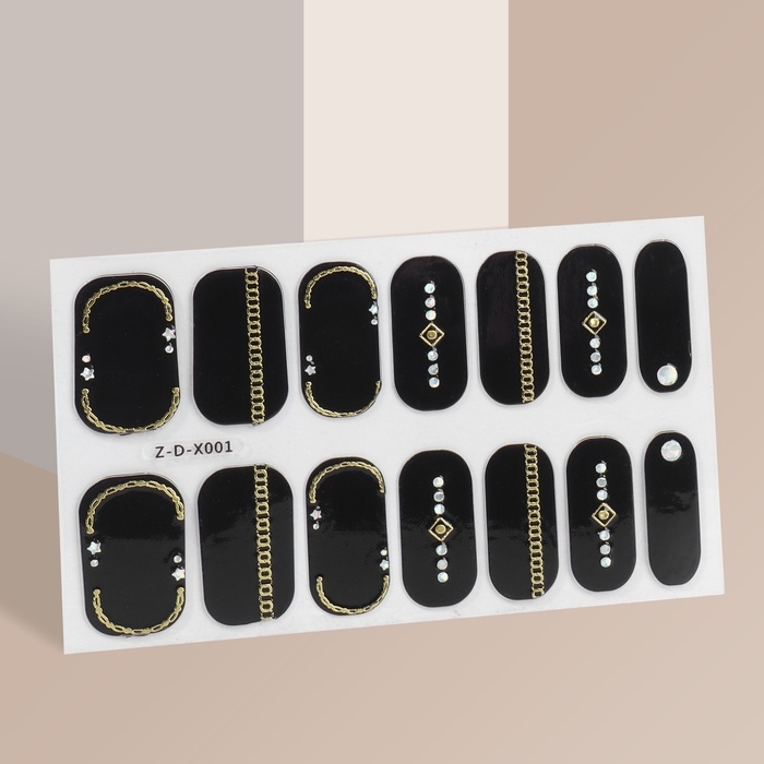 Лаковые полоски для маникюра, 14 шт, цвет чёрный