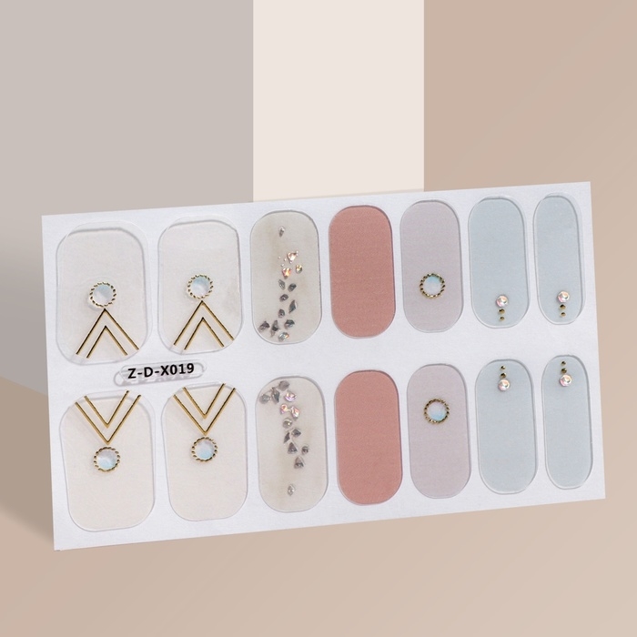 Лаковые полоски для маникюра, 14 шт, цвет бежевый/розовый/голубой