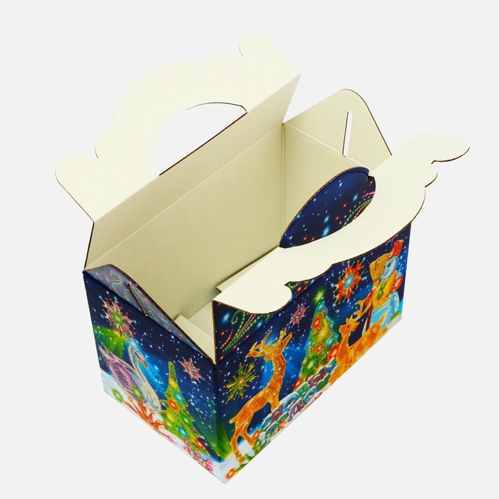 Коробка выполнена из качественных материалов, которые обеспечивают сохранность содержимого. Она имеет яркий и красочный дизайн, который отражает атмосферу Нового года.