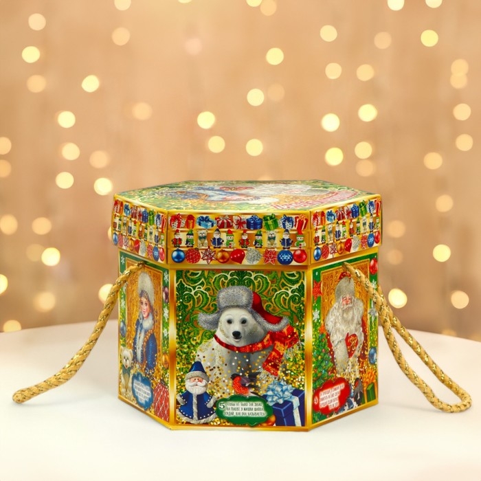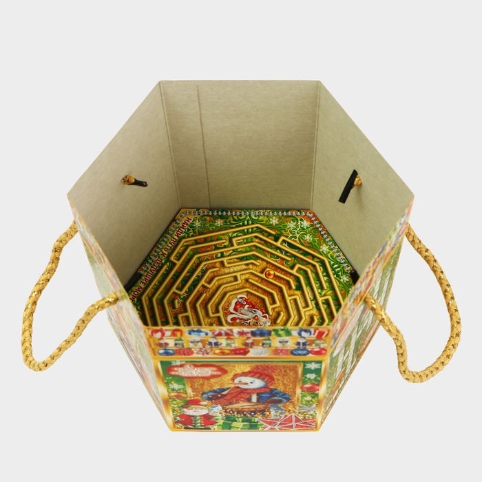 Коробка выполнена из качественных материалов, которые обеспечивают сохранность содержимого. Она имеет яркий и красочный дизайн, который отражает атмосферу Нового года.