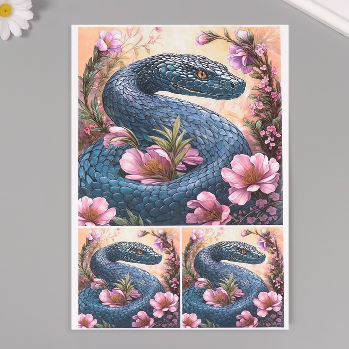 Новогодняя декупажная карта "Питон с цветами", плотность 45 г/м2, формат А4