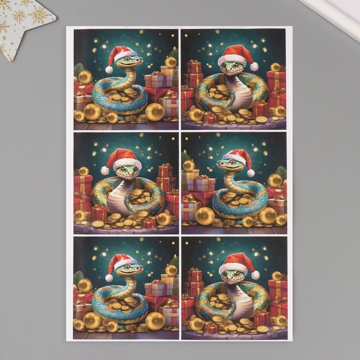 Новогодняя декупажная карта "Змея и богатство", плотность 45 г/м2, формат А4