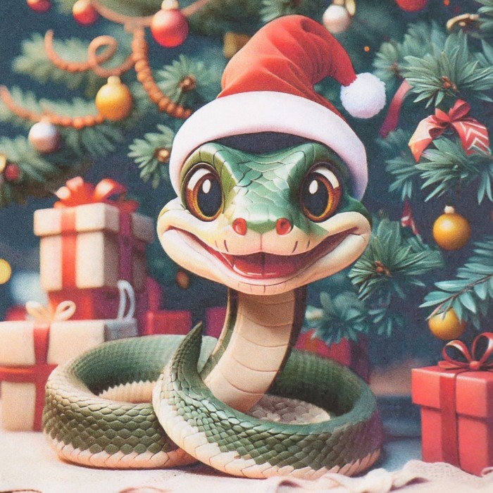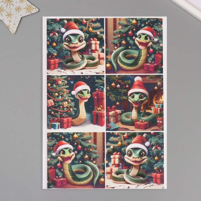 Новогодняя декупажная карта "Змея у ёлочки", плотность 45 г/м2, формат А4