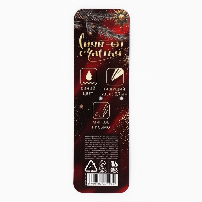 Ручка шариковая автоматическая пластик «Новый год: С Новым Годом» 0.7 мм