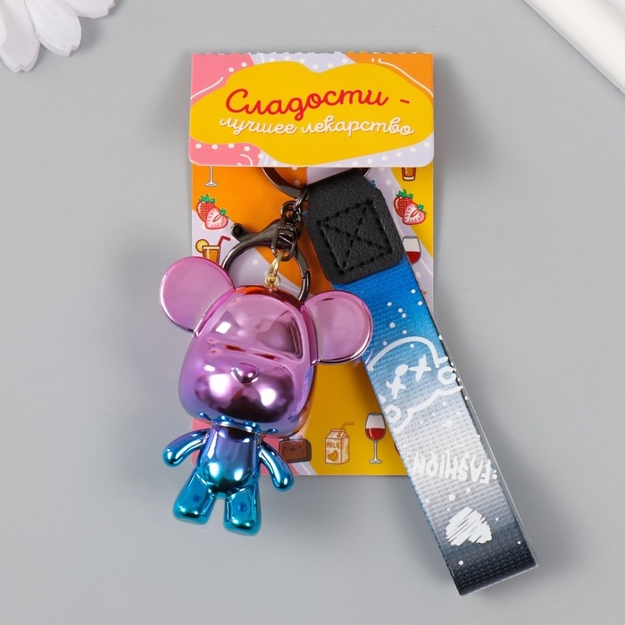 Брелок пластик с карабином, ремешком "Медвежонок" голография 4х5,3х6,5 см
