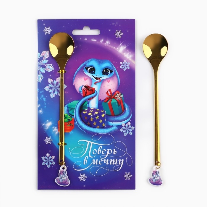 Ложка новогодняя с пластиковым подвесом «Новый год: Поверь в мечту», 14,8 х 2,7 см