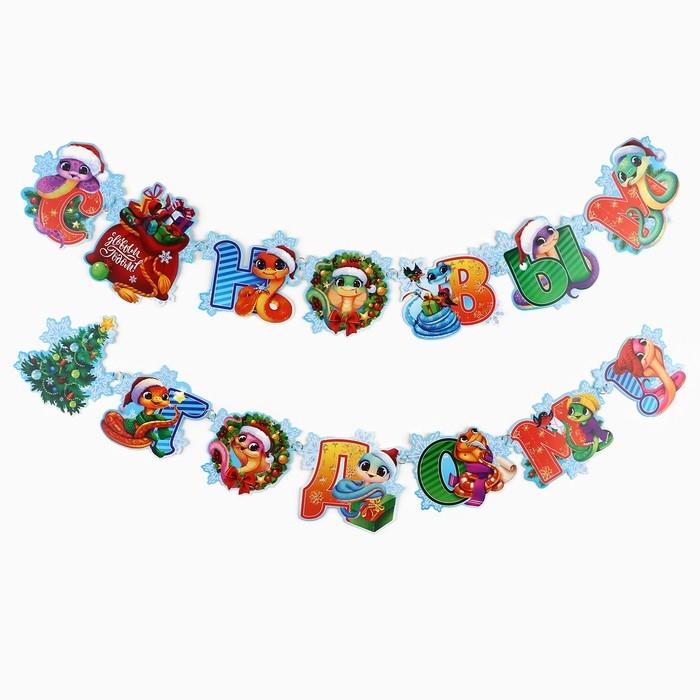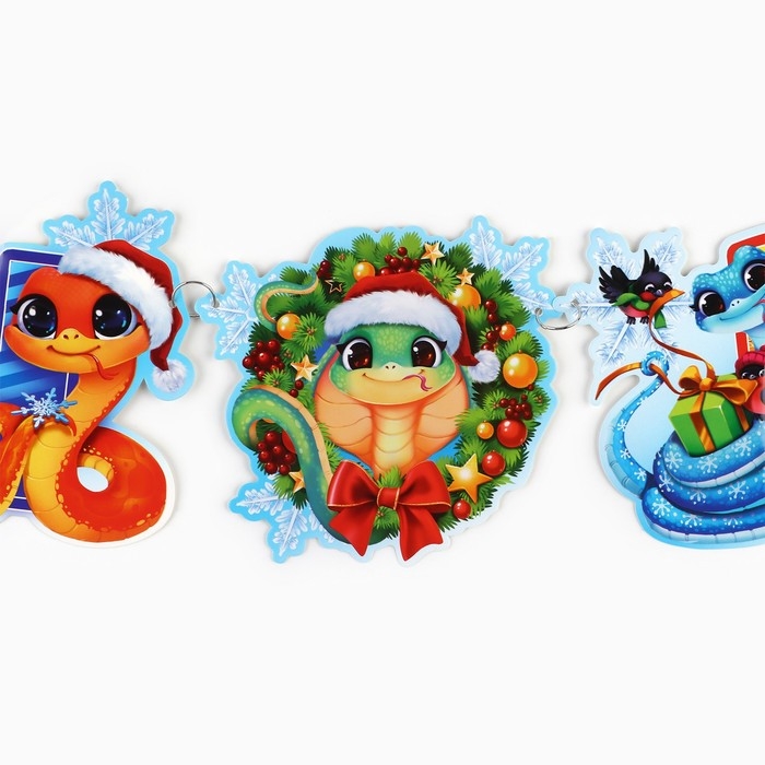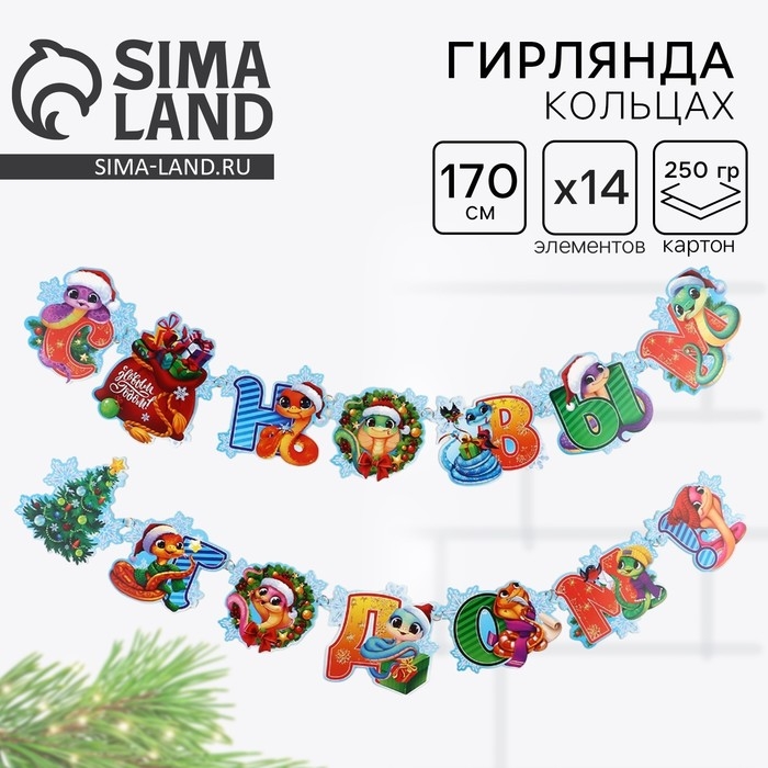 Гирлянда на кольцах новогодняя «С Новым годом», на Новый год, змейки, длина 170 см