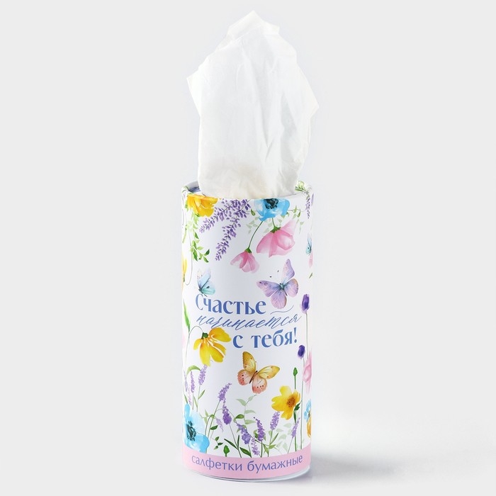 Салфетки бумажные в тубусе «Счастье начинается с тебя», 50 шт, двухслойные