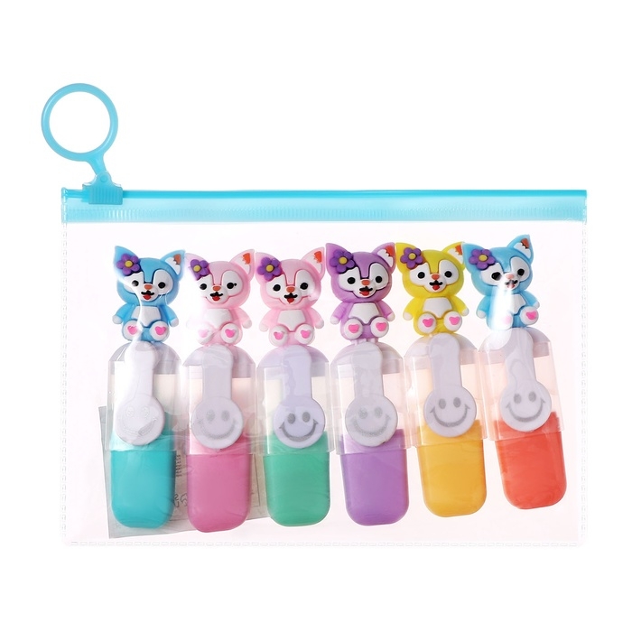 Набор маркеров текстовыделителей 6 штук 6 цветов, в пенале на молнии Котята