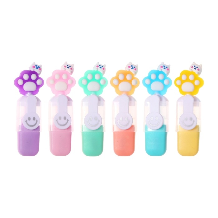 Набор маркеров текстовыделителей 6 штук 6 цветов, в пенале на молнии Лапки смайл