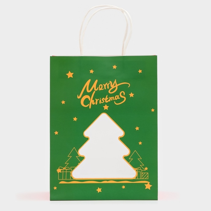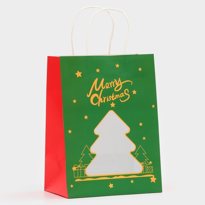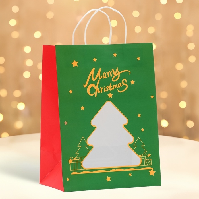 Пакет подарочный новогодний с окном "Ёлка" 19 х 26 х 13 см.