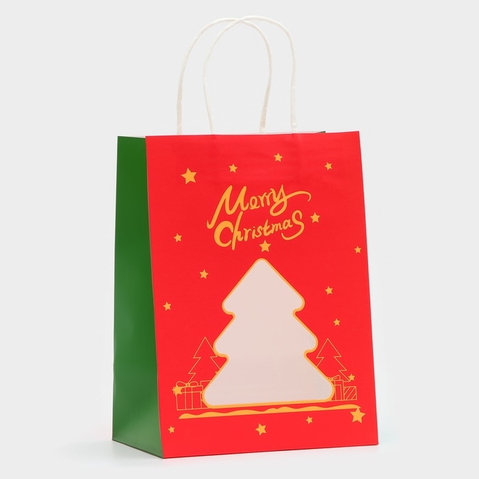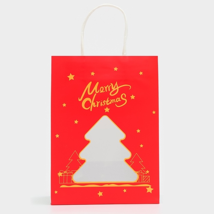 Пакет подарочный новогодний с окном "Ёлка" 19 х 26 х 13 см.