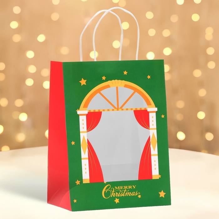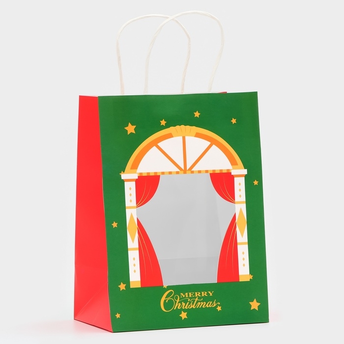 Пакет подарочный новогодний с окном "Театр" 19 х 26 х 13 см.