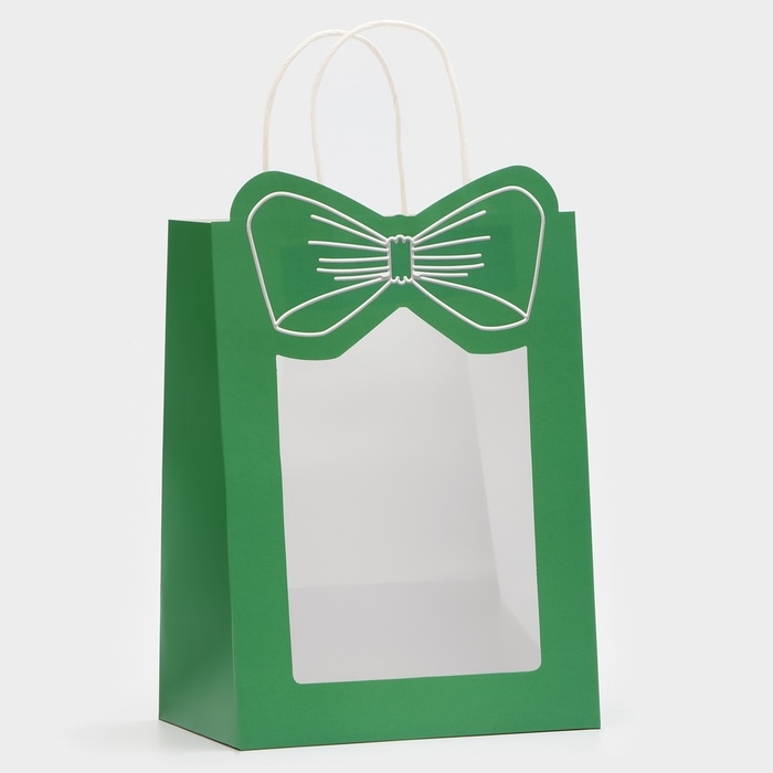 Подарочный пакет с окном "Бант" размером 19 х 26 х 13 см – это изысканное решение для эффектной упаковки вашего подарка.