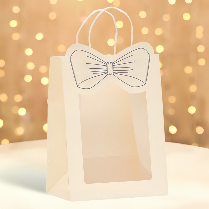 Подарочный пакет с окном "Бант" размером 19 х 26 х 13 см – это изысканное решение для эффектной упаковки вашего подарка.