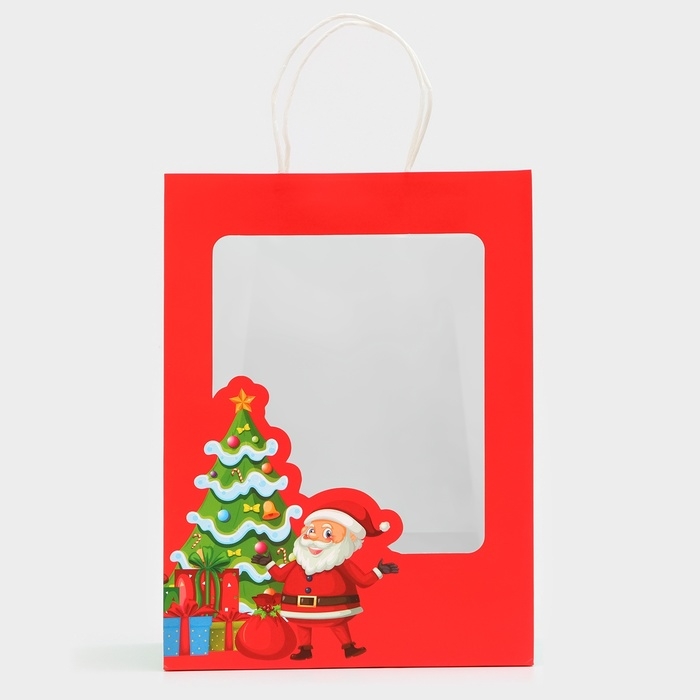 Пакет подарочный новогодний с окном "Дед Мороз" 30 х 22 х 14 см.