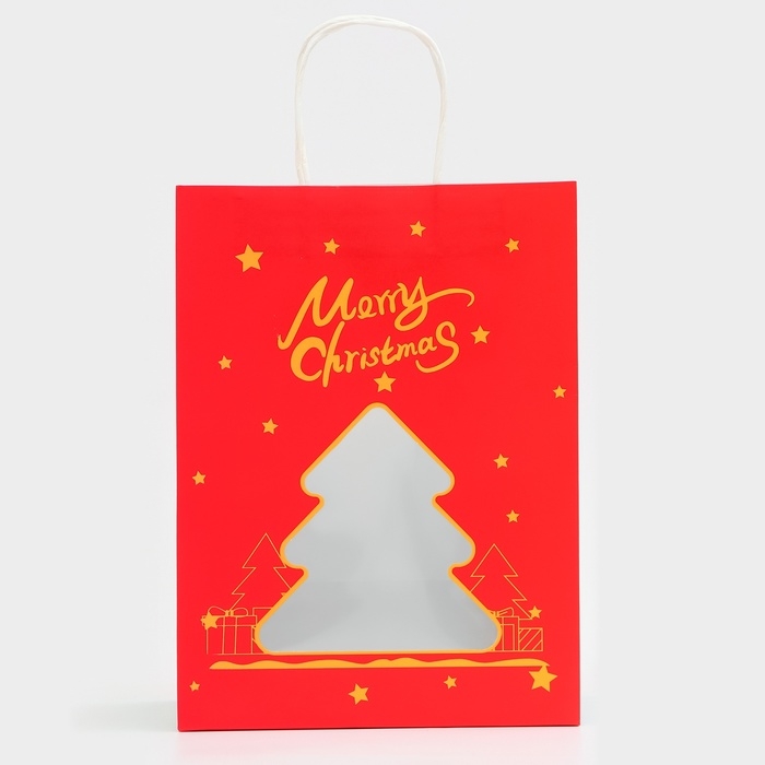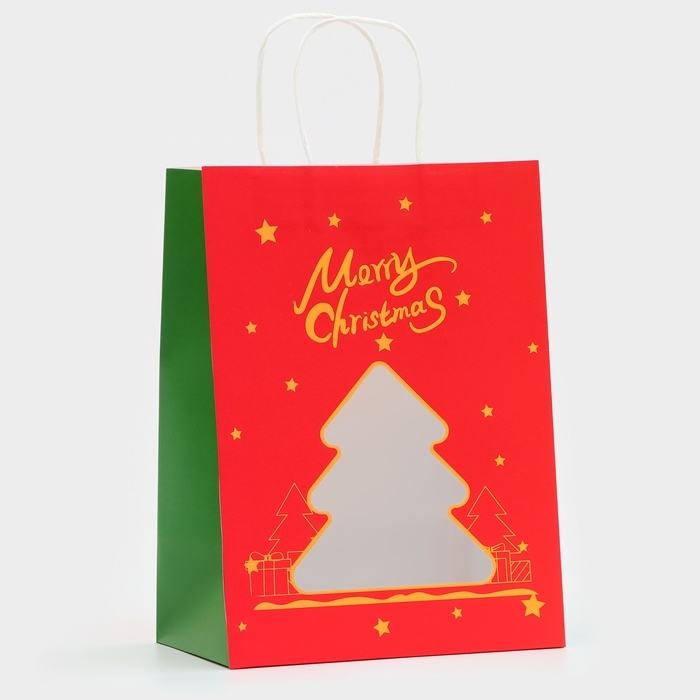 Пакет подарочный новогодний с окном "Ёлка" 30 х 22 х 14 см.