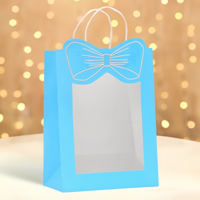 Подарочный пакет с окном "Бант" размером 26 х 35 х 15 см – это изысканное решение для эффектной упаковки вашего подарка.