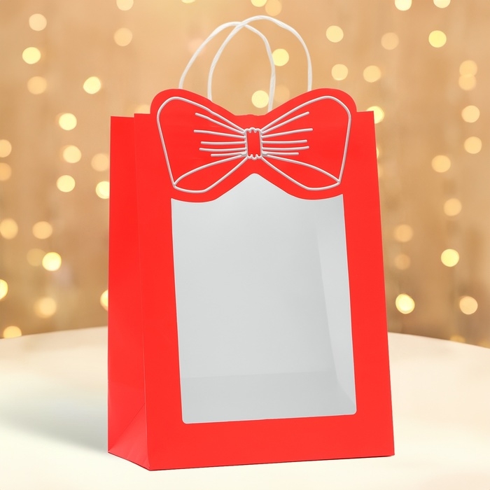 Подарочный пакет с окном "Бант" размером 26 х 35 х 15 см – это изысканное решение для эффектной упаковки вашего подарка.