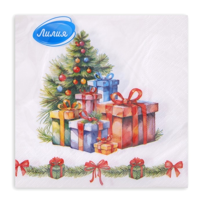 Новогодние салфетки бумажные Лилия «Новогодние подарки», 2 слоя, 33х33 см, 20 шт