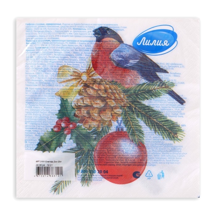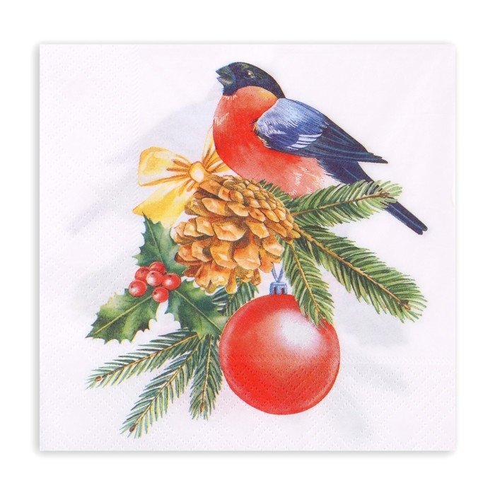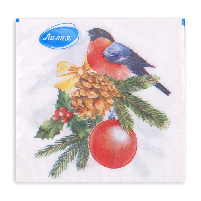 Новогодние салфетки бумажные Лилия «Снегирь», 2 слоя, 33х33 см, 20 шт