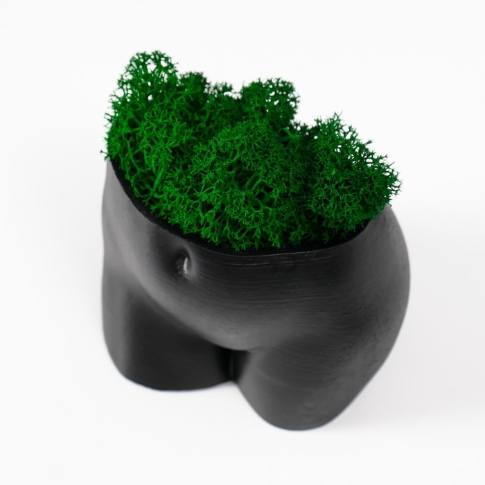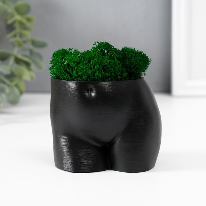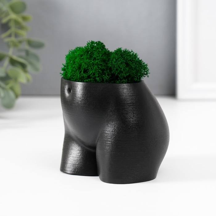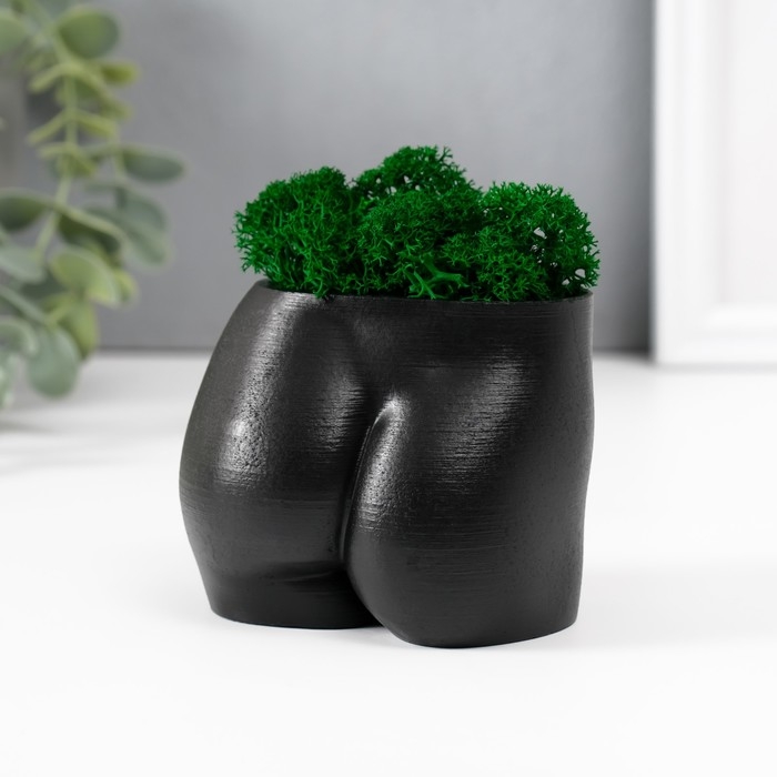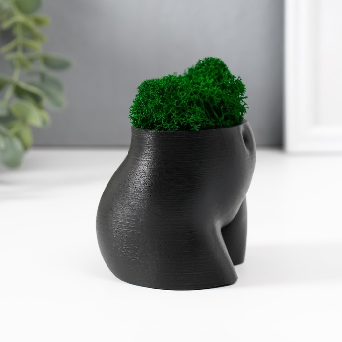 Кашпо бетонное "Невинный вид" высота 6,5см, ширина 8,5см черный со мхом