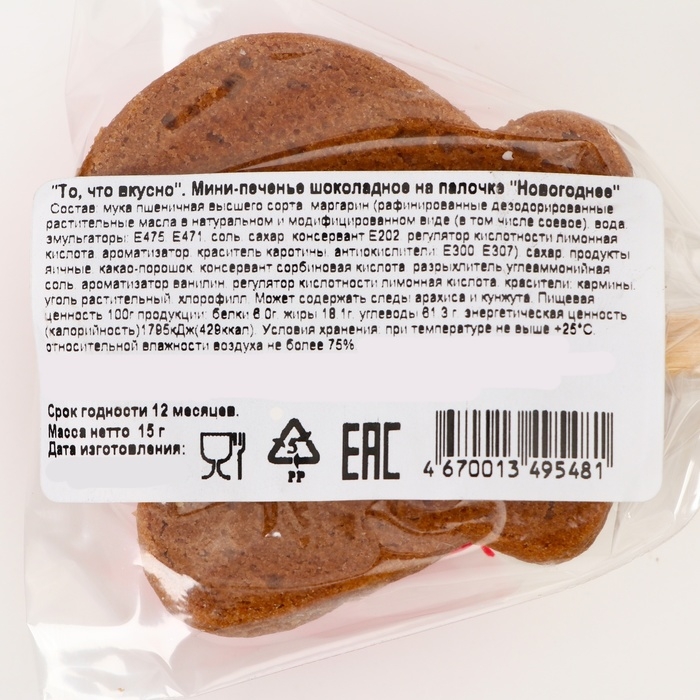 Новый год. Мини печенье шоколадное на палочке "Новогоднее" 15г 60шт (2блх30шт)