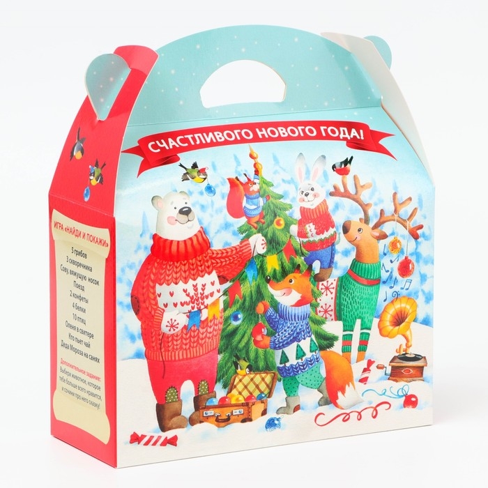 Эта упаковка подойдёт для детских новогодних утренников и порадует школьников.