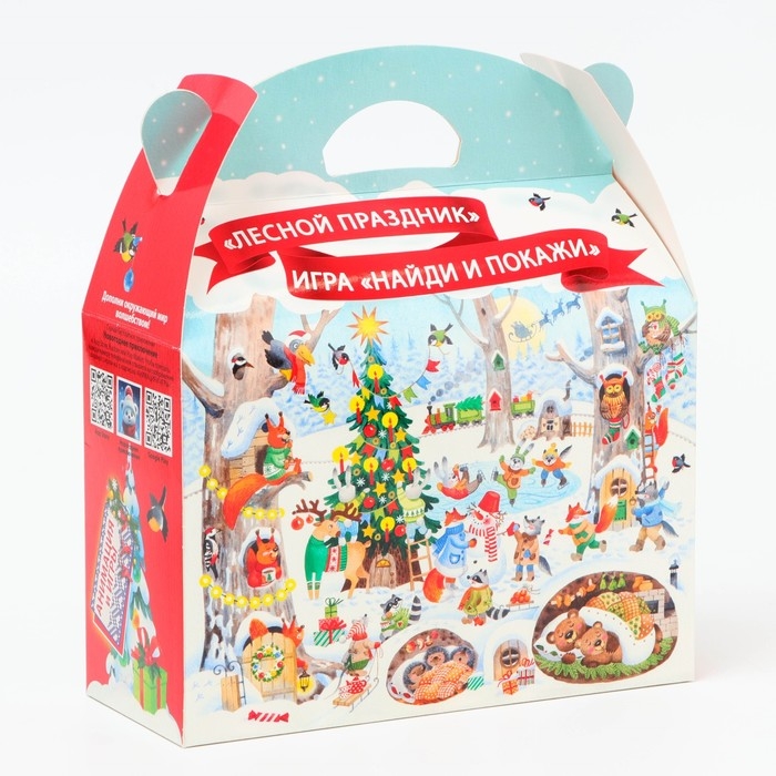 Новый год. Подарочная коробка Новогодняя Баул "Лесной праздник" с игрой и анимацией 22 х 9 х 22 см.
