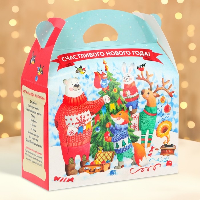 Наполнить коробку можно конфетами или небольшими новогодними сувенирами. Яркий и оригинальный рисунок на коробке создаст праздничное настроение и подчеркнёт тематику праздника. Такая упаковка сделает ваш подарок по-настоящему особенным и запоминающимся.