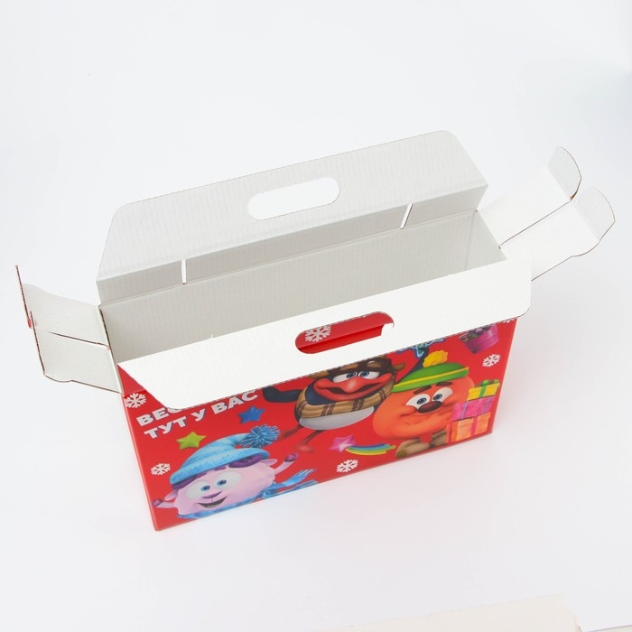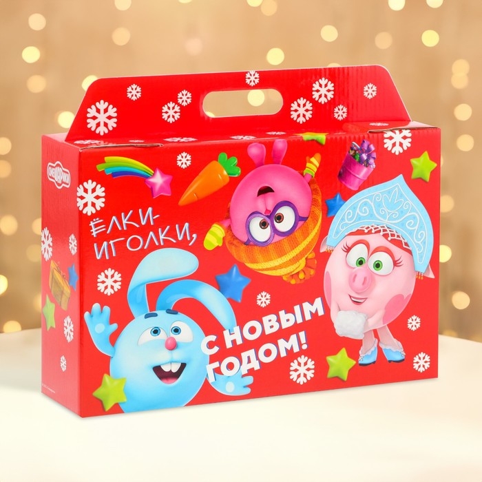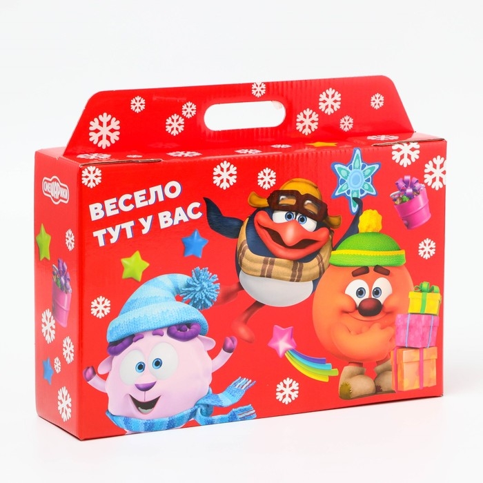 Новый год. Подарочная коробка Новогодняя Портфель широкий "Смешарики" лицензия 31 х 8,5 х 20,3 см (+5 см).