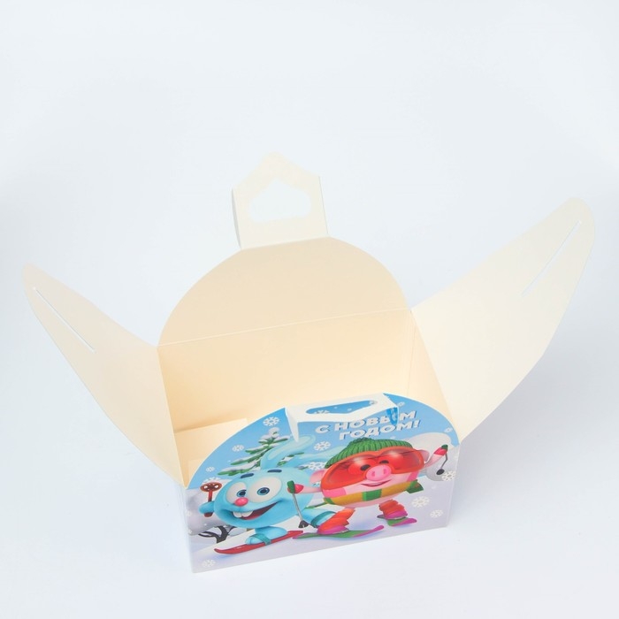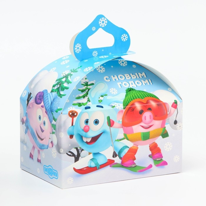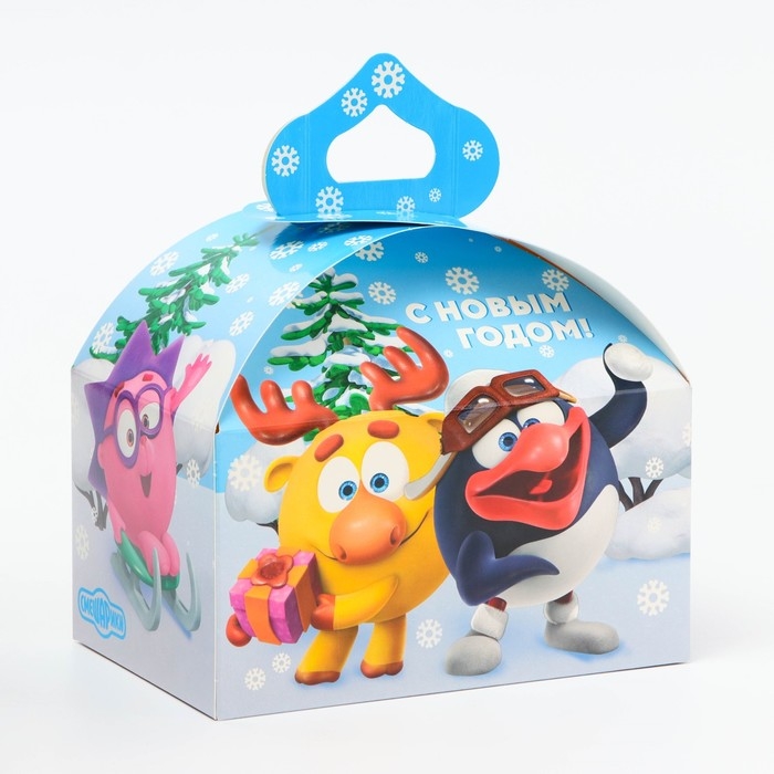 Новый год. Подарочная коробка Новогодняя Сундучок "Смешарики" лицензия 18,5 х 12,5 х 16,5 см (+5,5 см).