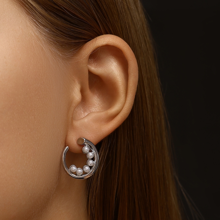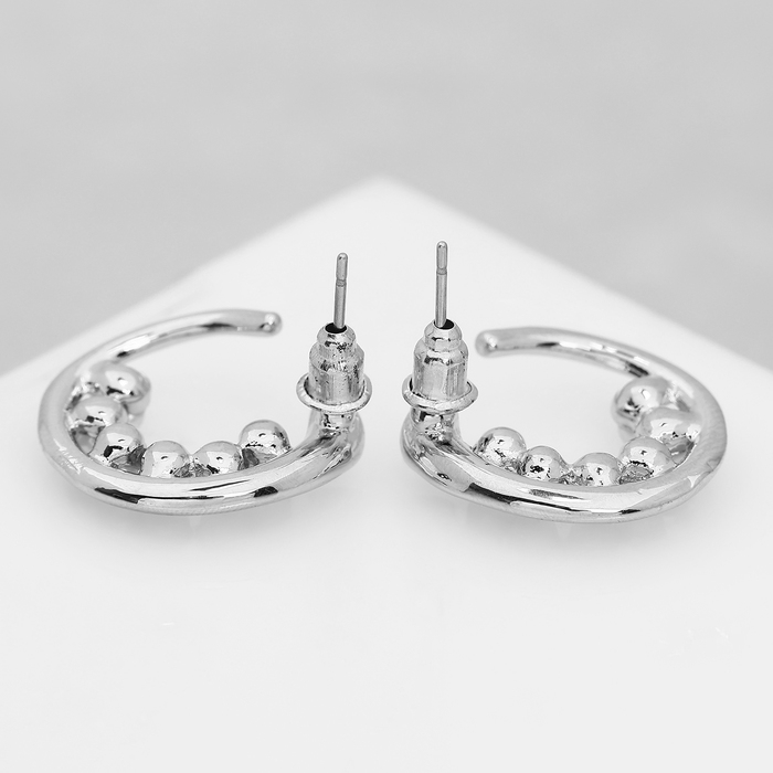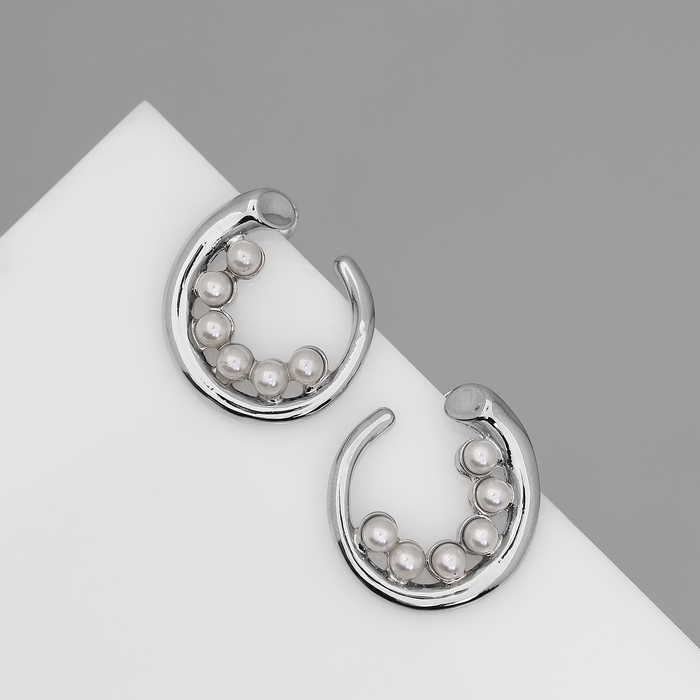 Серьги с жемчугом «Бусина» горошина, цвет серебро