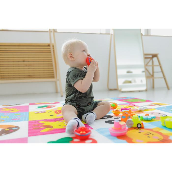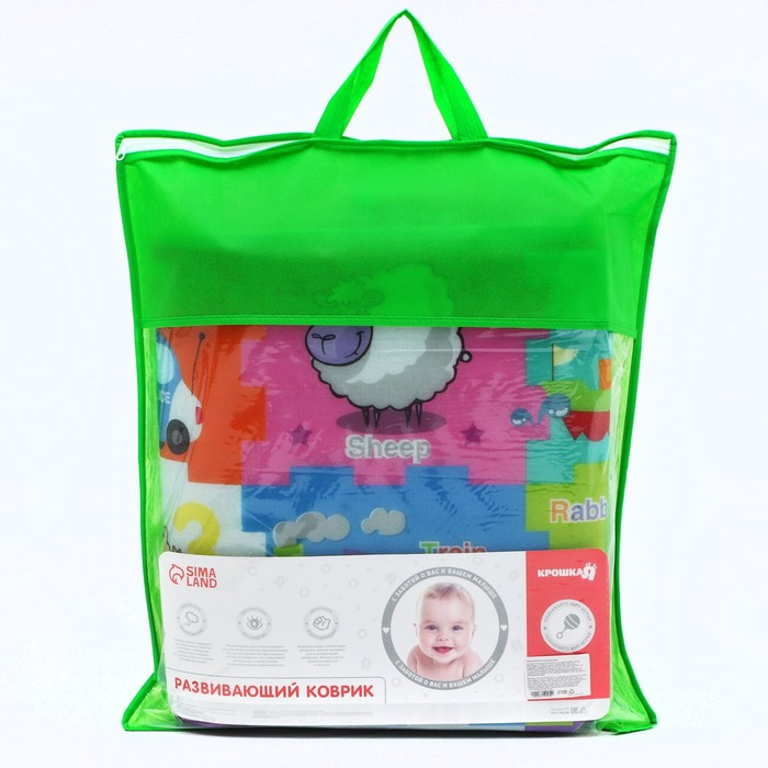 Коврик поможет быстро создать игровую зону в квартире или на природе. Изделие прекрасно подходит для малышей, которые учатся ползать или уже делают первые шаги. На внешнюю сторону изделия нанесены яркие изображения. Занятия на коврике познакомят малютку с разными цветами и формами, поспособствуют развитию воображения, зрительного восприятия и концентрации внимания.