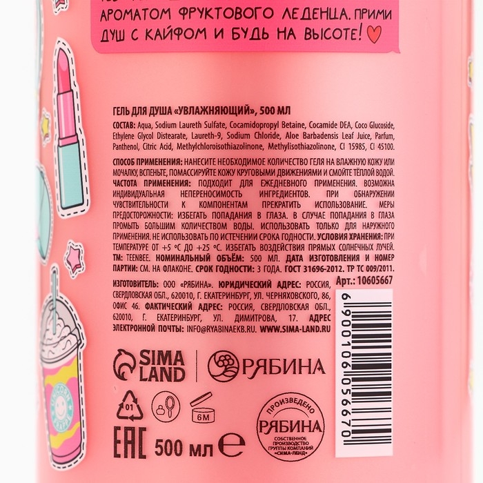 Гель для душа, увлажнение, 500 мл, аромат фруктового леденца, TeenBee