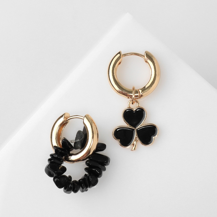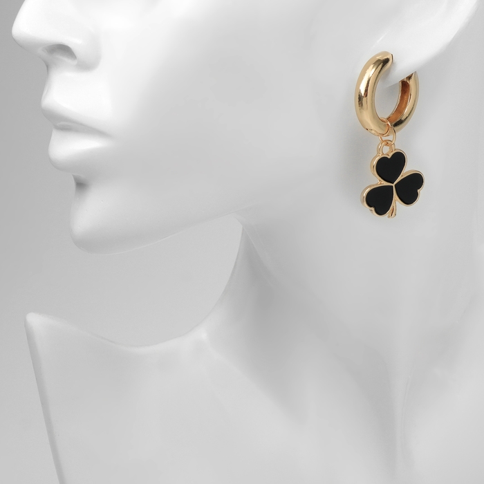 Серьги со съёмным элементом «Трансформер» клевер-сердце, цвет чёрный в золоте
