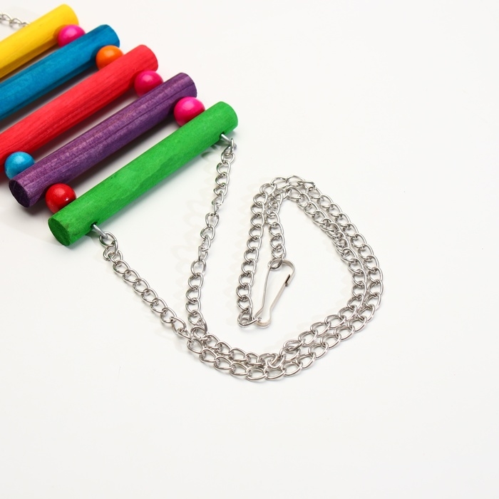Игрушка для птиц "Лесенка с бусинами", 5 ступеней, 35 см, микс цветов
