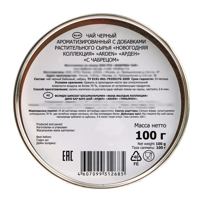 «Arden» — это новогодний чёрный чай в подарочной банке с чабрецом. Этот чай станет отличным подарком для тех, кто ценит качество и аромат напитка.