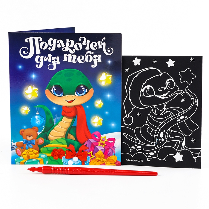 Гравюра с открыткой на новый год «Праздник для тебя» с цветным эффектом, новогодний набор для творчества